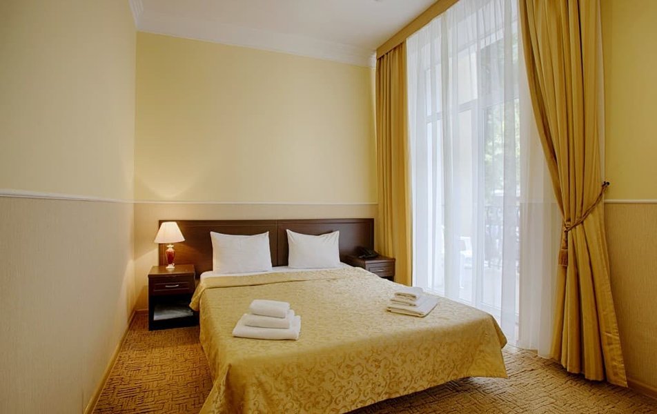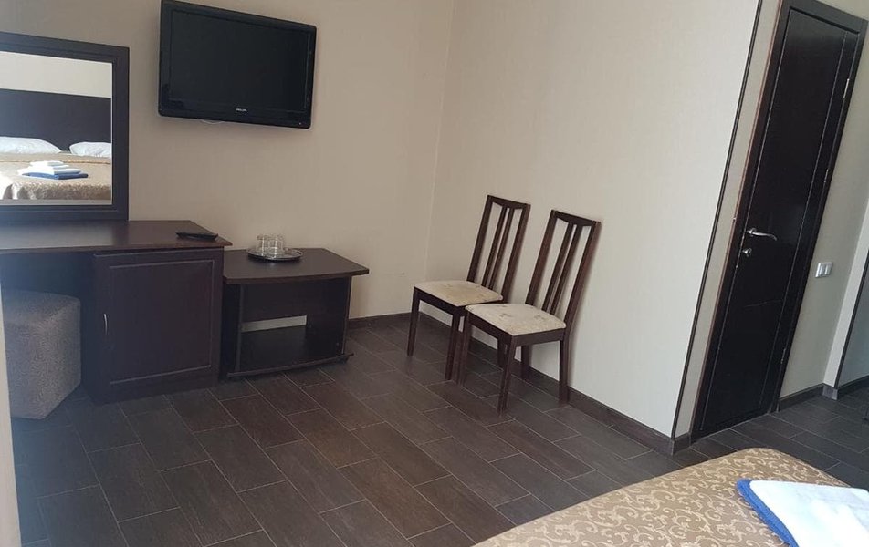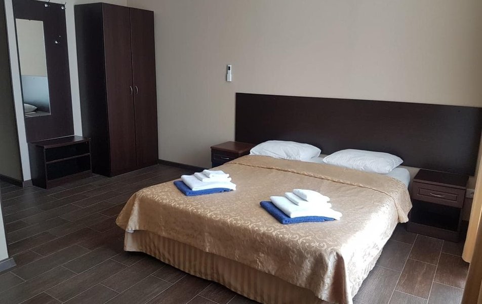 Отель хороший, твердая 4-ка. Персонал вежливый, приветливый. Номер у нас был 2-местный с видом на море. Номер просторный. Уборка по требованию, бельё меняют раз в 3 дня. Есть полотенца, но нет туалетных принадлежностей, так что мыло, шампунь, зуб.пасту берите с собой. Питание хорошее. Голодный никто не уходил. Единственный минус -в меню отсутствует говядина. Мы свинину не едим, поэтому обходились курицей. Десерты отличные: булочки, торты, пирожные. В обед подавали домашнее красное вино. Пляж просторный, лежаки свободные, о таком можно только мечтать в бархатный сезон. Идти от отеля 2 минуты.Море штормило все 5 дней. Вода чистейшая, солёная. На пляже и в море камни ,поэтому нужна обувь для купания. Глубина приличная, детям купаться опасно, только с родителями. Отдыхающие в основном семейные пары, пожилые люди. Территория тихая, чистая, красивая. Есть большой бассейн с пресной водой. Конечно не обошлось без ротовируса на 3й день, хорошо ,что напротив есть аптека. Но самое главное, ради чего стоит приехать, это природа. Наши курорты даже сравнивать не стоит. Запах эвкалипта, кипарисов стоит неописуемый. Можно сходить в приморский парк, в дельфинарий, в парк атракционов. На рынке ничего интересного. Фрукты все турецкие, краснодарские. Мандарины ещё особо не пошли, когда мы были, так продавцы китайский мандарин, продают, как местный. Я это говорю, потому что сами занимаемся фруктами, и знаем, в каких ящиках идёт товар. Не покупайтесь на эти уловки. Из местного только инжир и айва. В целом отдых понравился. Приезжайте в Абхазию наслаждаться морем и природой.