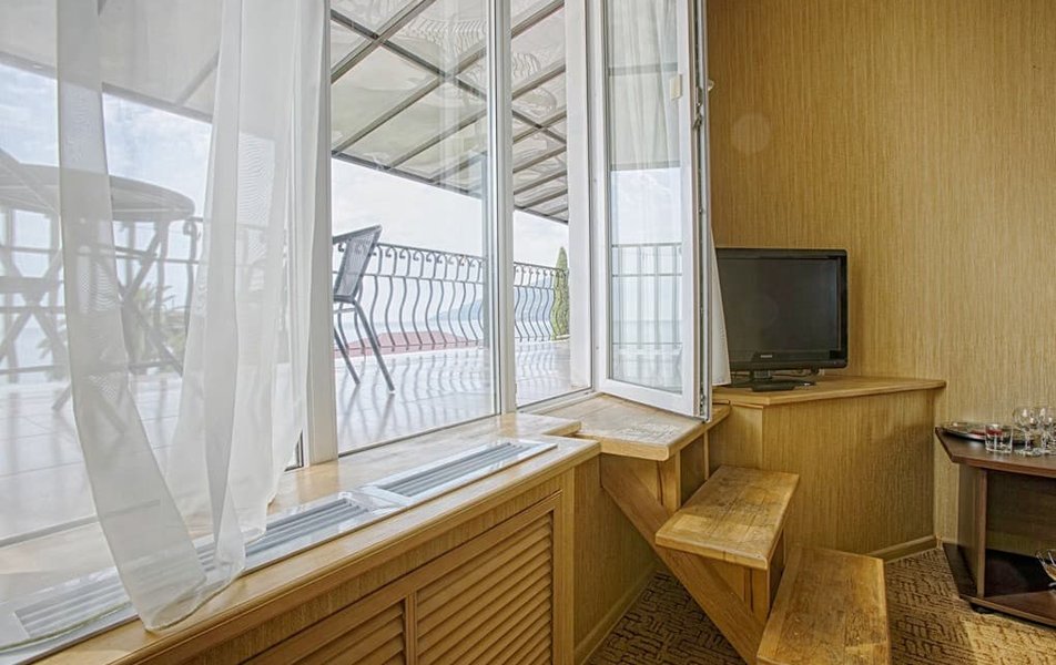 Очень понравился отдых в этом прекрасном месте. Хочется отметить прекрасную работу персонала который способен помочь в любом вопросе и решить любую проблему, и просто впечатление от общения с которым приятное. Очень близкое расположение к морю. Не хочется отмечать как минус, скорее рекомендация и отзыв. В люксовых номерах имеется шикарный балкон с видом на море, и что бы взойти ра него нужно преодолеть 3 крутых ступени. Людям у которых имеются затруднения с передвижением, это составляет не большую но сложность. И наличие небольшого поручня с одной стороны ступенек позволило бы людям наслаждаться прекрасным видом с балкона намного большое. Спасибо за прекрасный отдых
