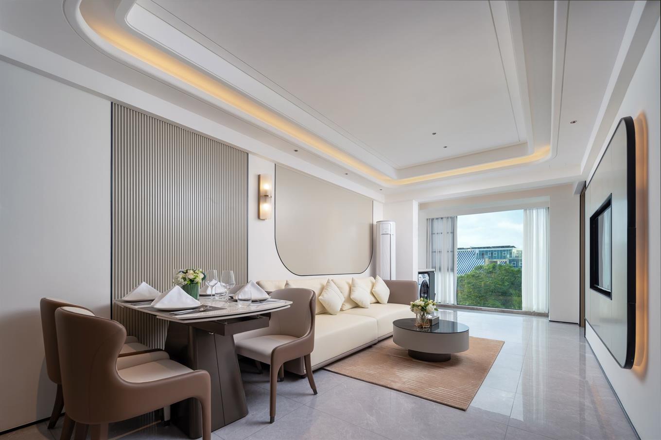 В номере 2 спальни, гостиная, кухня, ванная комната с душем. В удобства включены Wi-Fi, кондиционер, телевизор, телефон, сейф, фен, гладильные принадлежности. Гости размещаются на 2 двуспальных кроватях king-size. Из окон открывается вид на горы.