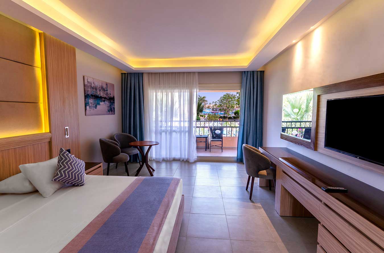 Отель замечательный. Отдыхал в Хургаде во многих, но этот отель приятно удивлял «бонусами» постоянно на протяжении всего отдыха. Местоположение отличное, рядом магазин Клеопатра с сувенирами и торговый центр ( мин 10-15 ходьбы ) Сензо Молл. На территории аквапарк с подогревом, горки для взрослых и детей. Номер (за доплату 10 долл) дали люкс. Замечательный, мебель свежая, тв ЖК, фен, чайник с набором кофе, чая и т.д. Есть большое окно в душ с шторкой!!! Уборка каждый день. WiFi бесплатный на всей территории отеля с хорошей скоростью. Есть бассейн большой с подогревом. Еда разнообразная, регулярно крабы и жареные креветки, куры и т.д. Утром разные свежевыжатые соки. В обед мороженое и пончики в барах. Заселение с 14:00, но при раннем приезде одевают браслет и можно сразу пользоваться всеми прелестями отеля. При позднем выезде дали продлить номер до 18:00 за 20 долл. ( трансфер в 22:00 ) и не срезают браслет, можно пользоваться всеми услугами. Отдых удался. Вернусь обязательно.