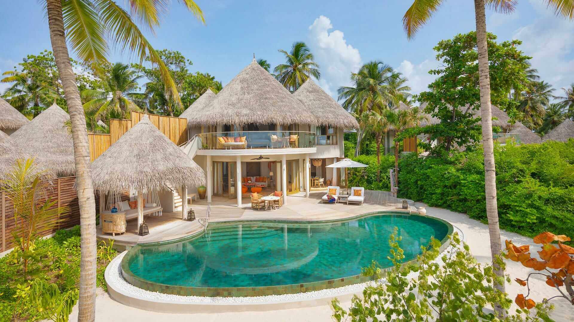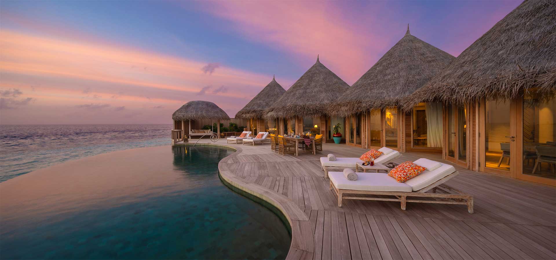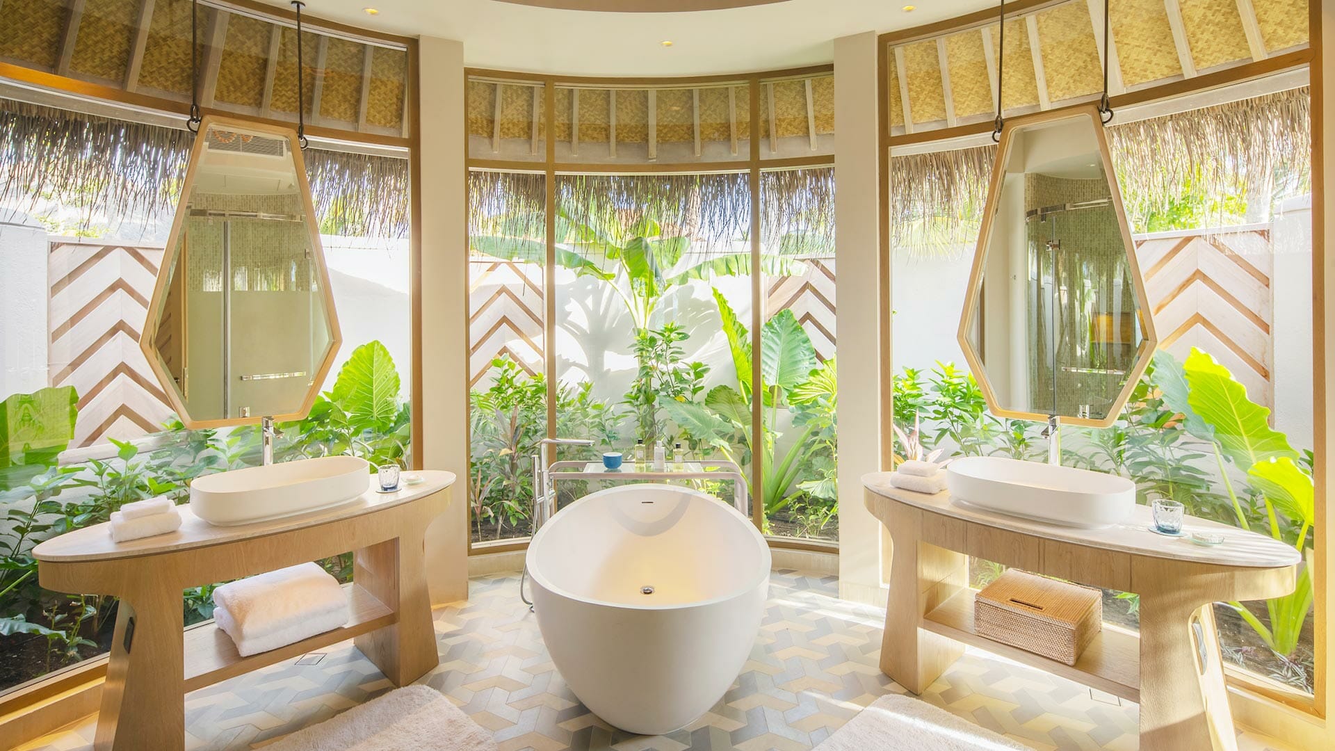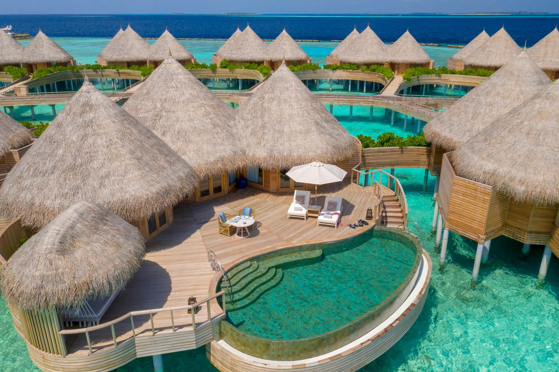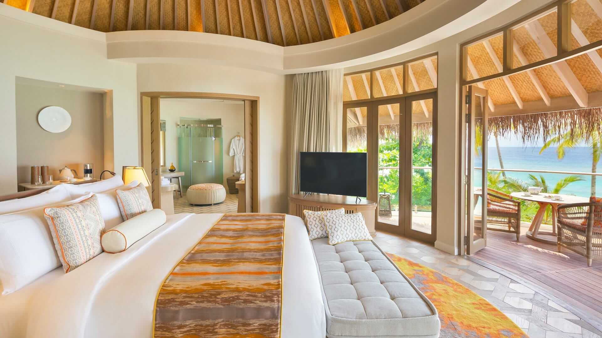 Двухкомнатный домик состоит из спальни, гостиной, ванной комнаты с ванной и душем, террасы с бассейном и спуском в лагуну. В числе удобств кондиционер, кофемашина и принадлежности для приготовления чая/кофе, телевизор, мини-бар и винный холодильник, Wi-Fi, улуги дворецкого и бесплатные фрукты ежедневно.