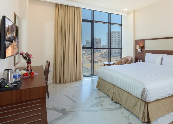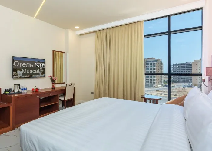10 минут до аэропорта, просторные чистые комнаты. Очень дружелюбный персонал и разнообразные вещи на завтрак. Однако нет местных магазинов, кроме продуктового магазина и бензонасоса. Для конференц-центра этот отель идеально подходит, так как его дешевле, чем другие отели поблизости. Такси до конференц-центра стоит всего 3 оманских риала.