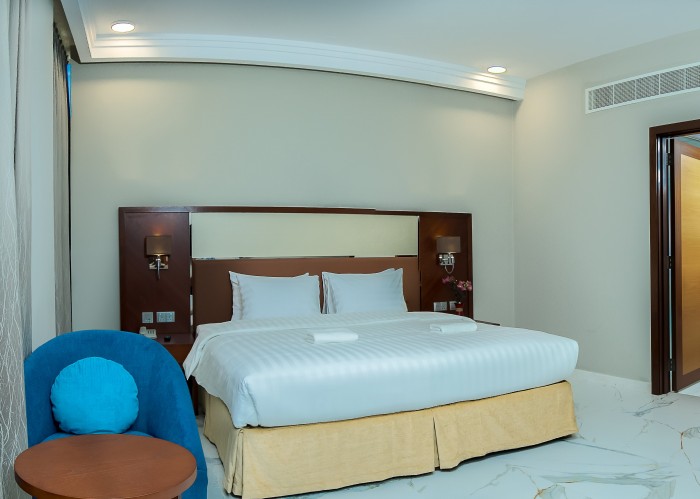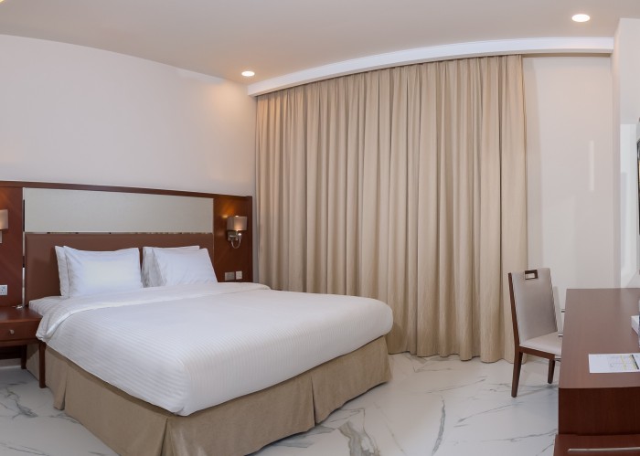 Однокомнатный номер укомплектован двуспальной кроватью, ванной комнатой с душем, феном, банными принадлежностями. Удобства включают беспроводной интернет, кондиционер, телевизор, телефон, мини-холодильник, сейф, набор для приготовления чая и кофе.