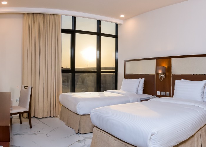 В комплектации номера сейф, телевизор, кондиционер, телефон, мини-холодильник, чайно-кофейные принадлежности, беспроводной интернет. Для размещения служат 2 односпальные кровати, санузел с душем, феном, туалетными принадлежностями.